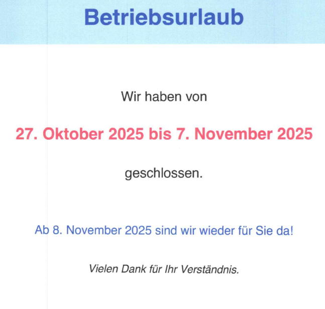 GH LEITNER - BETRIEBSURLAUB VON 27.10. BIS 07.11.2025!