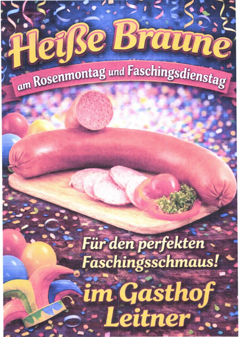 Heiße Braune am Rosenmontag und Faschingdienstag im GH Leitner